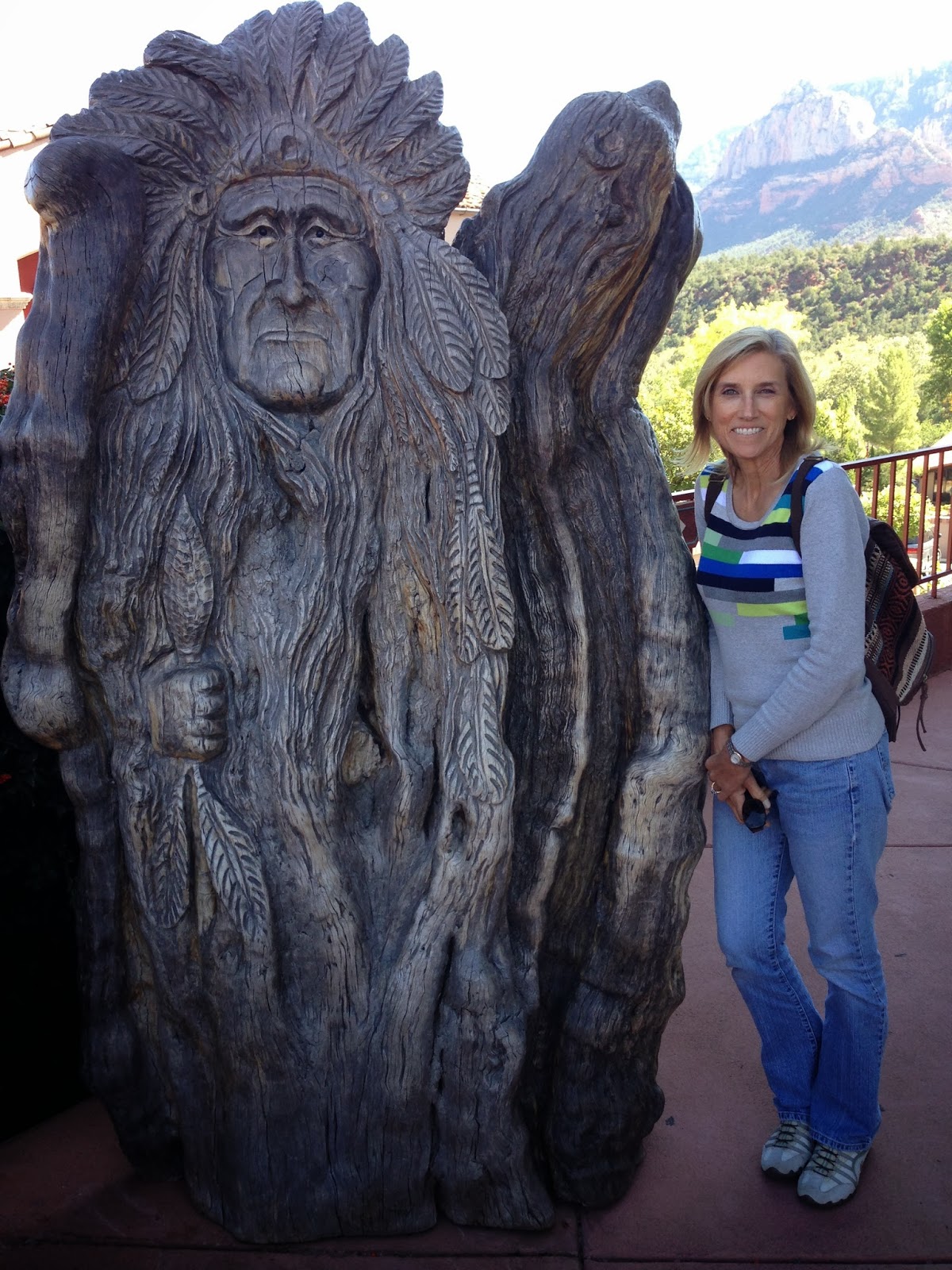 Our knowledge of Sedona was that it began as an artist colony and was also known as a mecca for the new age movement. We've had friends that have visited Sedona specifically to experience the "cosmic energy" of the area. The new age movement beliefs are reflected in one of the signs shown below. What surprised us was the beauty of the pink rock formations but also the commercialization of downtown Sedona. The place was packed with bus loads of people flowing in and out of boutiques and tourist shops up and down the main drag. We did find beautiful pieces of artwork all along main street. We were later told that the new art colony was in a small town called Jerome which is nestled into the mountains about 30 miles away.